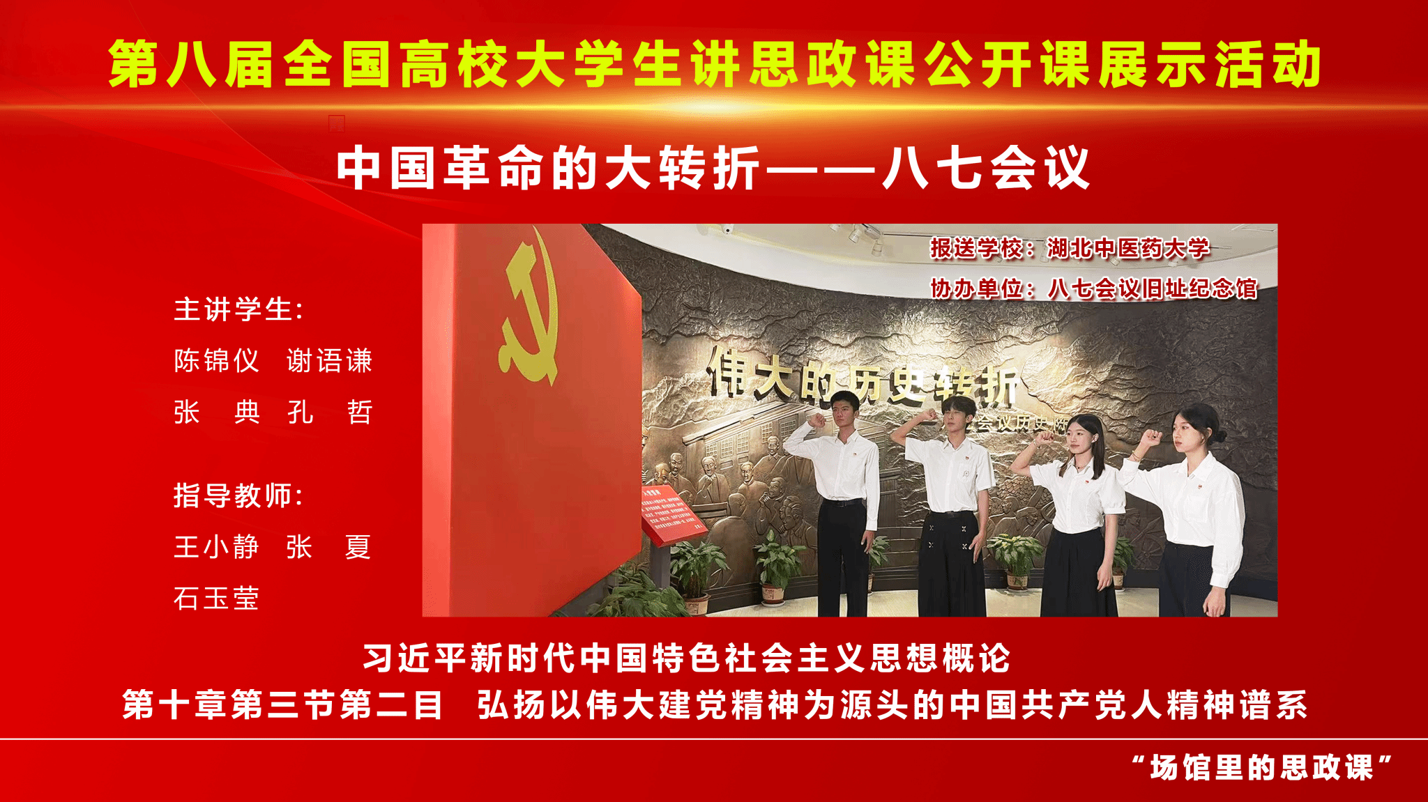 《中国革命的大转折——八七会议》由马克思主义学院和八七会议会址纪念馆联合制作完成。作品依托八七会议会址纪念馆的资料和陈设,采用大学生讲解、历史演绎、视频插播、图片展示等方式,呈现了八七会议的召开背景、筹备过程、主要内容、重大意义,有助于引导青年学生传承红色血脉,赓续红色基因,踔厉奋发,勇毅前行,为以中国式现代化全面推进强国建设、民族复兴伟业贡献青春力量。