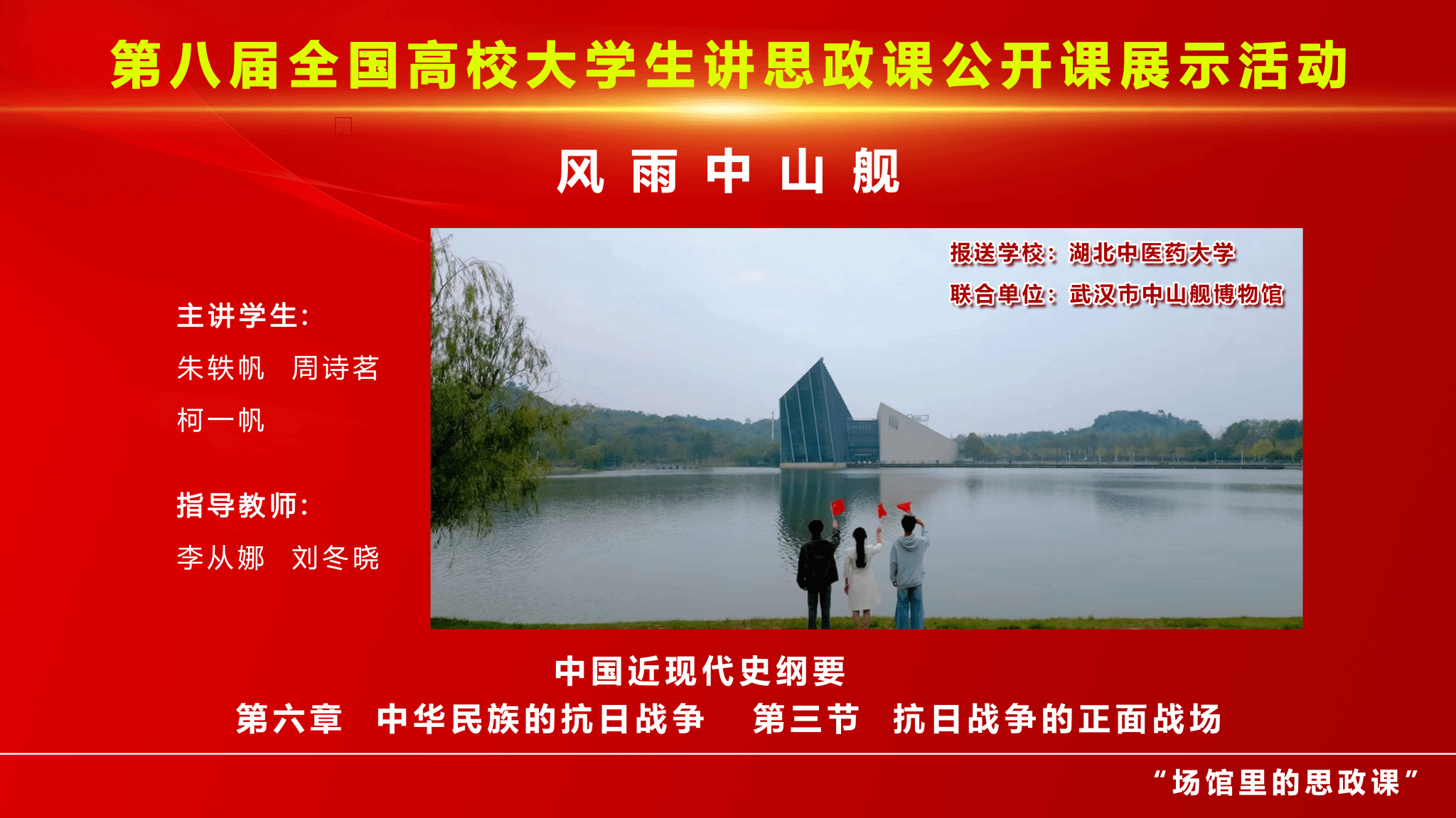 《风雨中山舰》由马克思主义学院和武汉中山舰博物馆联合制作完成,作品将思政课小课堂与武汉中山舰博物馆大课堂进行深度融合,梳理展现了辛亥革命后孙中山先生继续为维护民主共和而努力的历程、全面抗战期间以中山舰爱国官兵为代表的国民党正面战场的艰苦抗战,让大学生近距离感受孙中山先生百折不挠、奋斗不息的革命精神,以及抗日英烈为国捐躯、铁血悲歌的英雄气概,引导大学生树立正确的历史观,培育爱国主义精神,为推进中国式现代化、实现中华民族伟大复兴而不懈奋斗。