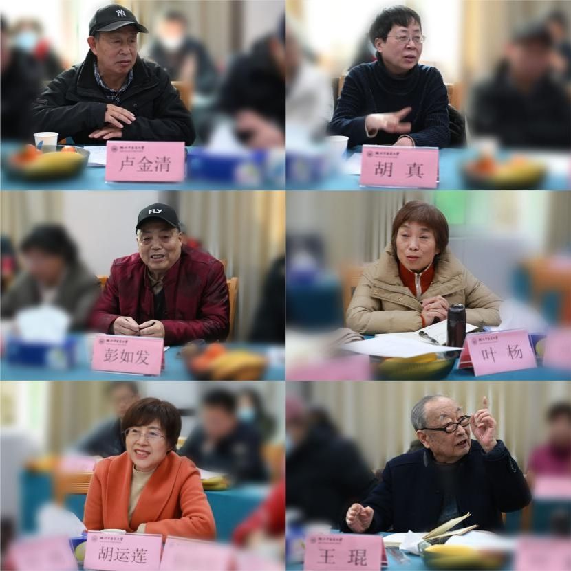 离退休教职工代表卢金清、胡真、彭如发、叶杨、胡运莲、王琨等六位同志在会上作交流发言。他们一致感谢学校一直以来对老同志的关心和关爱,为学校各项事业呈现出蓬勃发展的强劲态势感到由衷地高兴,并表示今后将更加关注学校发展,尽己所能,发挥余热,衷心希望学校取得更加辉煌的成绩。老同志还就湖北时珍实验室建设、学校青年人才培养、科研成果推广与转化、教医协作融合、医疗服务等方面提出意见和建议。