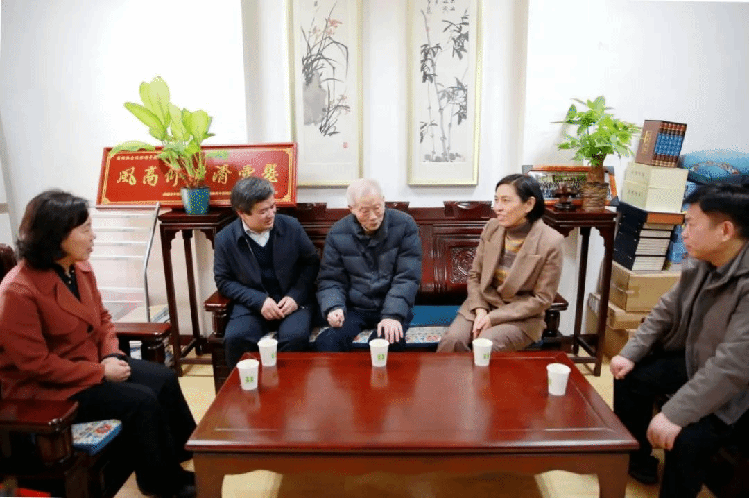 本网讯 1月22日,湖北省政协副主席杨玉华一行6人在昙华林校区国医大师梅国强教授传承工作室看望慰问梅国强教授并亲切座谈。党委书记刘松林,学校办公室、党委组织部、人事处相关负责人参加座谈。