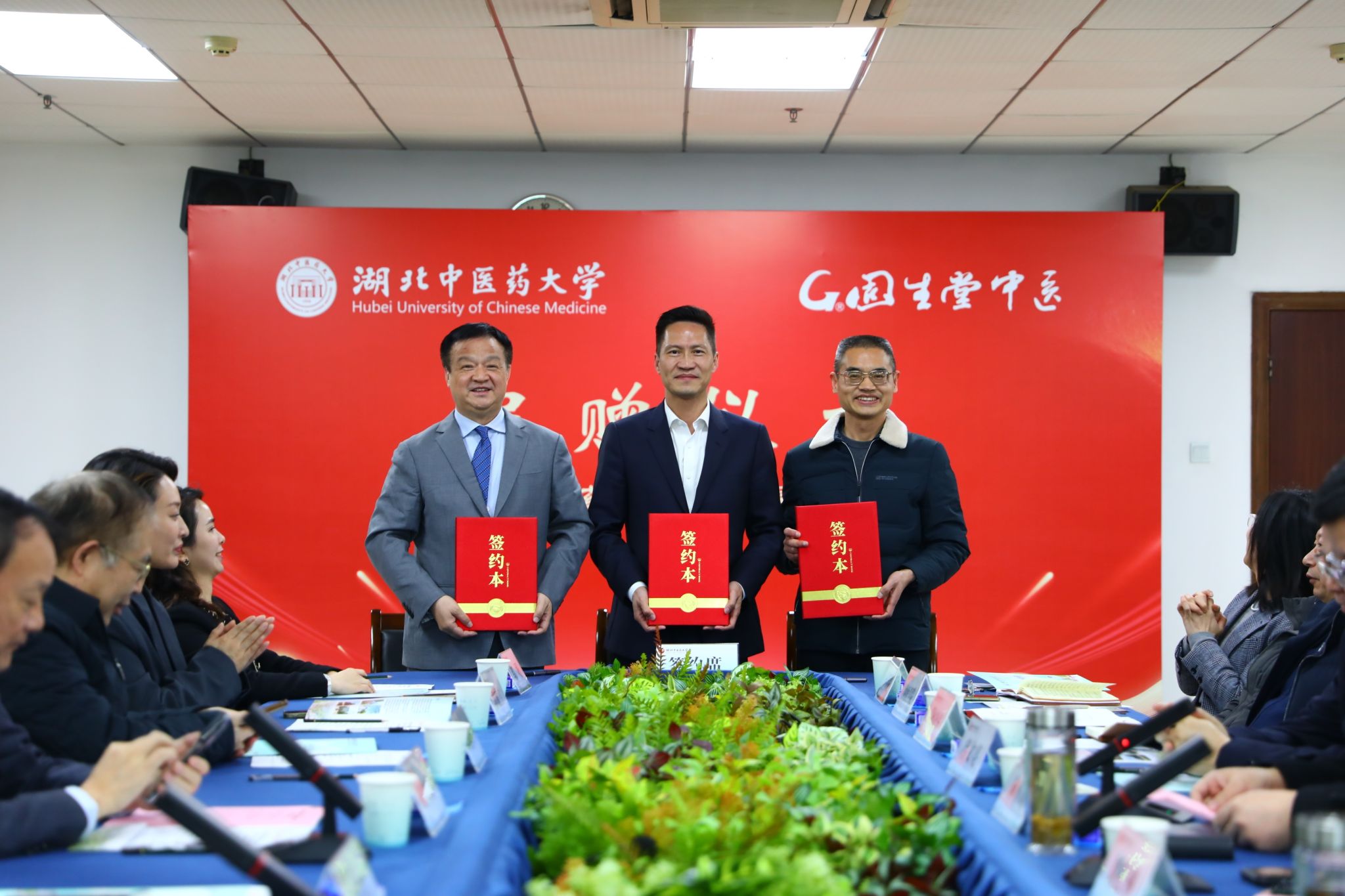 广州中医药大学原校长、世界中联医联体工作委员会会长王省良,岐黄学者、长江学者、上海中医药大学急危重症研究所所长、附属龙华医院急诊医学科主任、我校杰出校友方邦江教授,固生堂中医连锁管理集团副总裁王少敏,学校党委书记刘松林,校长陈刚,党委副书记,附属医院党委书记、院长何小明,副校长杨波,专家教授代表出席捐赠仪式,固生堂湖北区域经理,学校相关部门和学院负责人,以及学生代表参加活动。仪式由何小明主持。