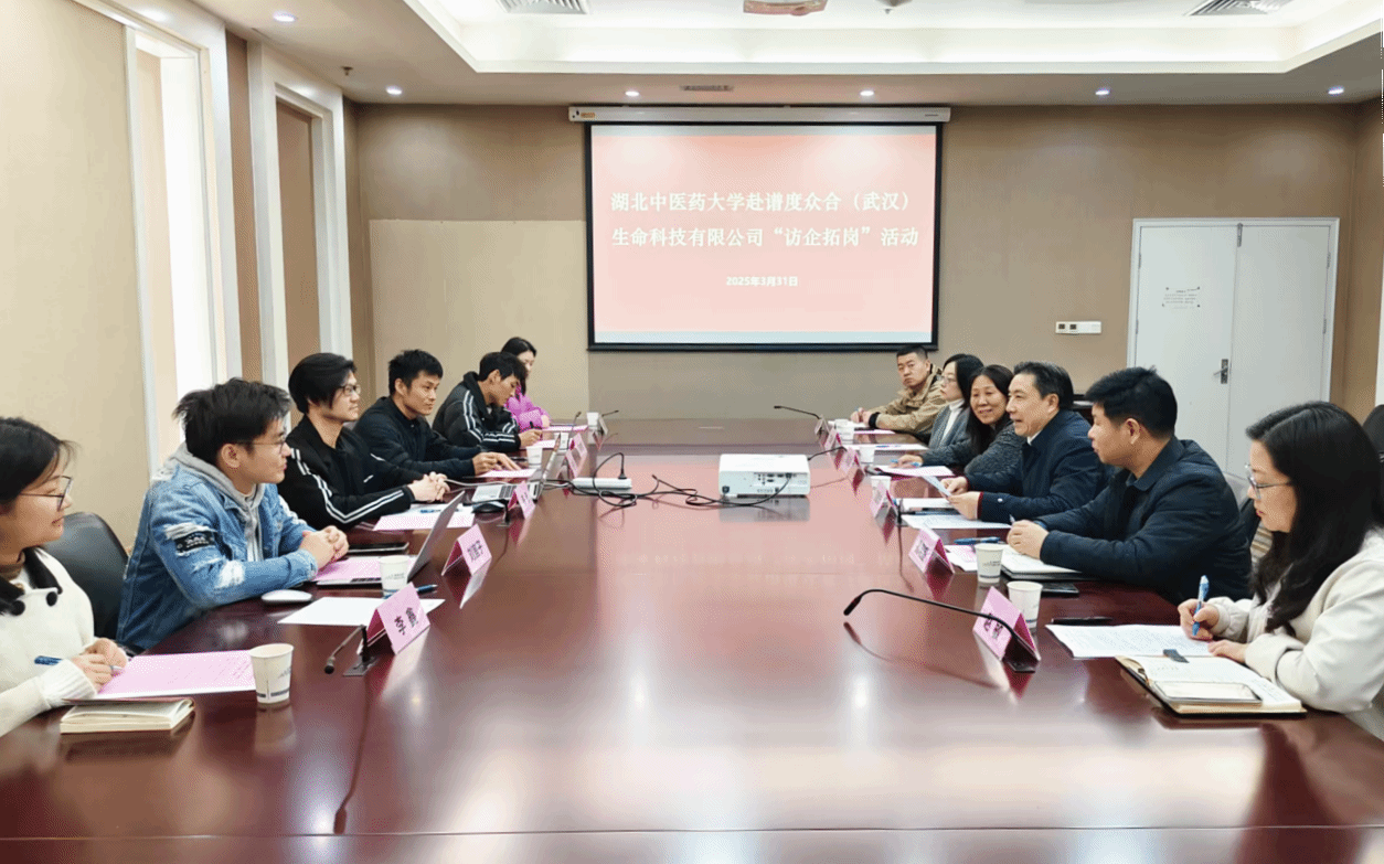 刘建忠对谱度众合(武汉)生命科技有限公司取得的成果给予高度肯定。他表示,此次访企拓岗促就业专项行动既是贯彻落实党中央、国务院关于高校毕业生就业工作决策部署的具体行动,也是深入了解企业需求、加强校企合作、深化产教融合的有效举措。今年2月,校企双方共同揭牌成立了“湖北中医药大学研究生工作站”,标志着双方在科研项目联合攻关、高层次人才培养、应用研究等领域合作迈出了坚实而重要的一步。希望双方以此次“访企拓岗”活动为契机,充分对接用人需求,在人才资源共享、科研平台共建、临床基础研究、实习就业等方面,开展全方位、深层次的合作,共同推动中医药科技创新与成果转化,实现校企共赢。