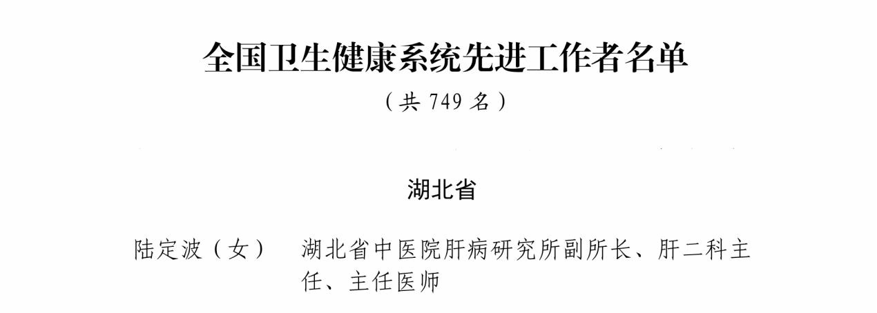 本网讯 3月31日,人力资源社会保障部、国家卫生健康委、国家中医药局、国家疾控局等四部门发布《关于表彰全国卫生健康系统先进集体、先进工作者及“白求恩奖章”获得者的决定》,附属医院(湖北省中医院)肝病研究所副所长、肝病二科主任、主任医师陆定波教授荣获“全国卫生健康系统先进工作者”称号。