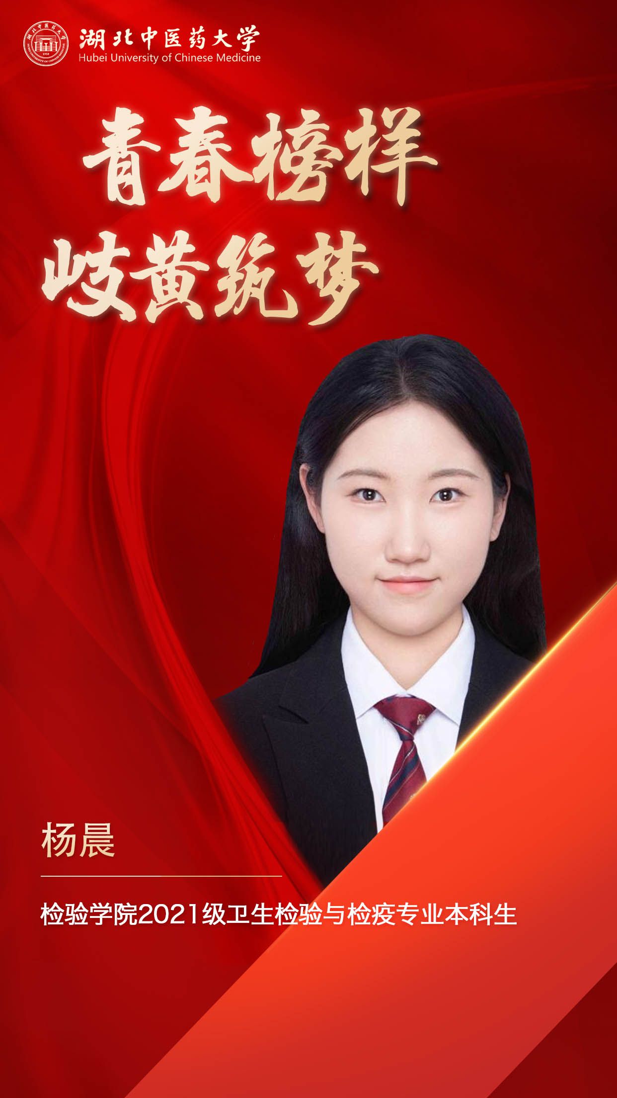 杨晨,中共党员,检验学院2021级卫生检验与检疫专业本科生。围绕卫生检验新技术开发、电化学传感技术等开展科研攻关,以第一作者发表SCI一区论文2篇,影响因子总和为12.9。负责项目获第十届“全国大学生基础医学创新研究暨实验设计论坛”预防医学赛道一等奖,主持省级大学生创新创业训练项目1项,获康瑞达奖学金及各类校级奖学金10余次。