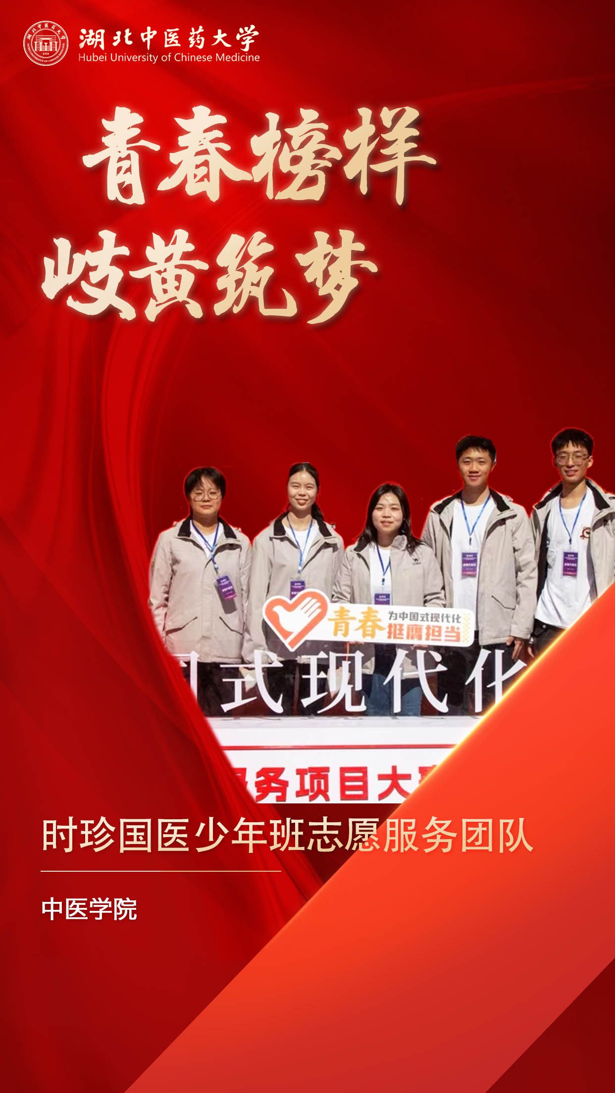 中医学院时珍国医少年班志愿服务团队以青少年、儿童疾病预防为目标,运用中医“治未病”理论科普中医药知识,传播中医药文化,服务青少年、儿童超3000人次。团队打造系列中医科普课程体系,通过寓教于乐的手作活动和养生功法保健推广模式,推动中医药文化创造性转化和创新性发展。获第七届湖北省青年志愿公益项目大赛金奖、第七届中国青年志愿服务项目大赛银奖。