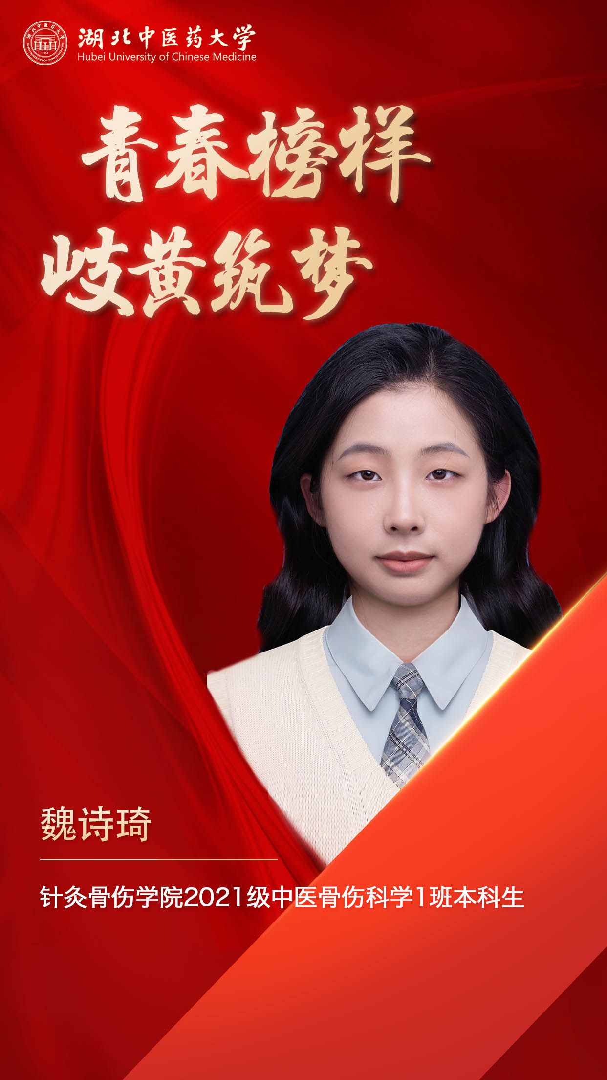 魏诗琦,针灸骨伤学院2021级中医骨伤科学1班本科生。面对人口老龄化需求,她以中医药“治未病”为切入点,积极参与老年体质与中药膏方研究,通过“古方新用”“古法今用”,用数据赋能传统医学现代化,探索“医养融合”新模式,负责项目获第十四届“挑战杯”中国大学生创业计划竞赛银奖。