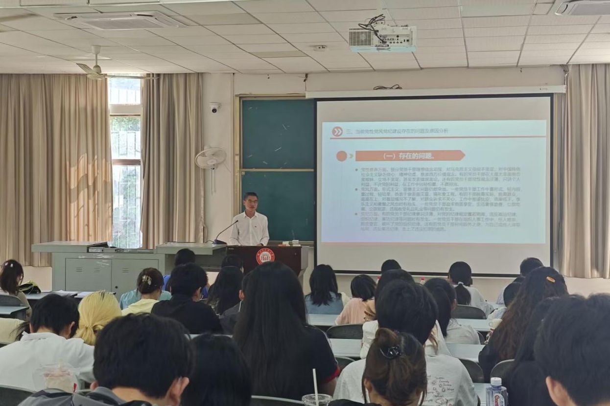 结合党的百年奋斗史,杨波通过鲜活的历史案例,从新民主主义革命时期“三大纪律、八项注意”的优良传统,到新时代构建“不敢腐、不能腐、不想腐”一体推进的战略部署,深入浅出地剖析了加强党性党风党纪建设的时代价值。他指出,这是应对百年变局风险挑战的必然选择,更是推进党的自我革命的应有之义。全面从严治党永远在路上。中央八项规定作为全面从严治党的突破口,已成为新时代党的建设的“金色名片”。要扎实推进深入贯彻中央八项规定精神学习教育,切实把学习成效转化为建功新时代的实际行动。