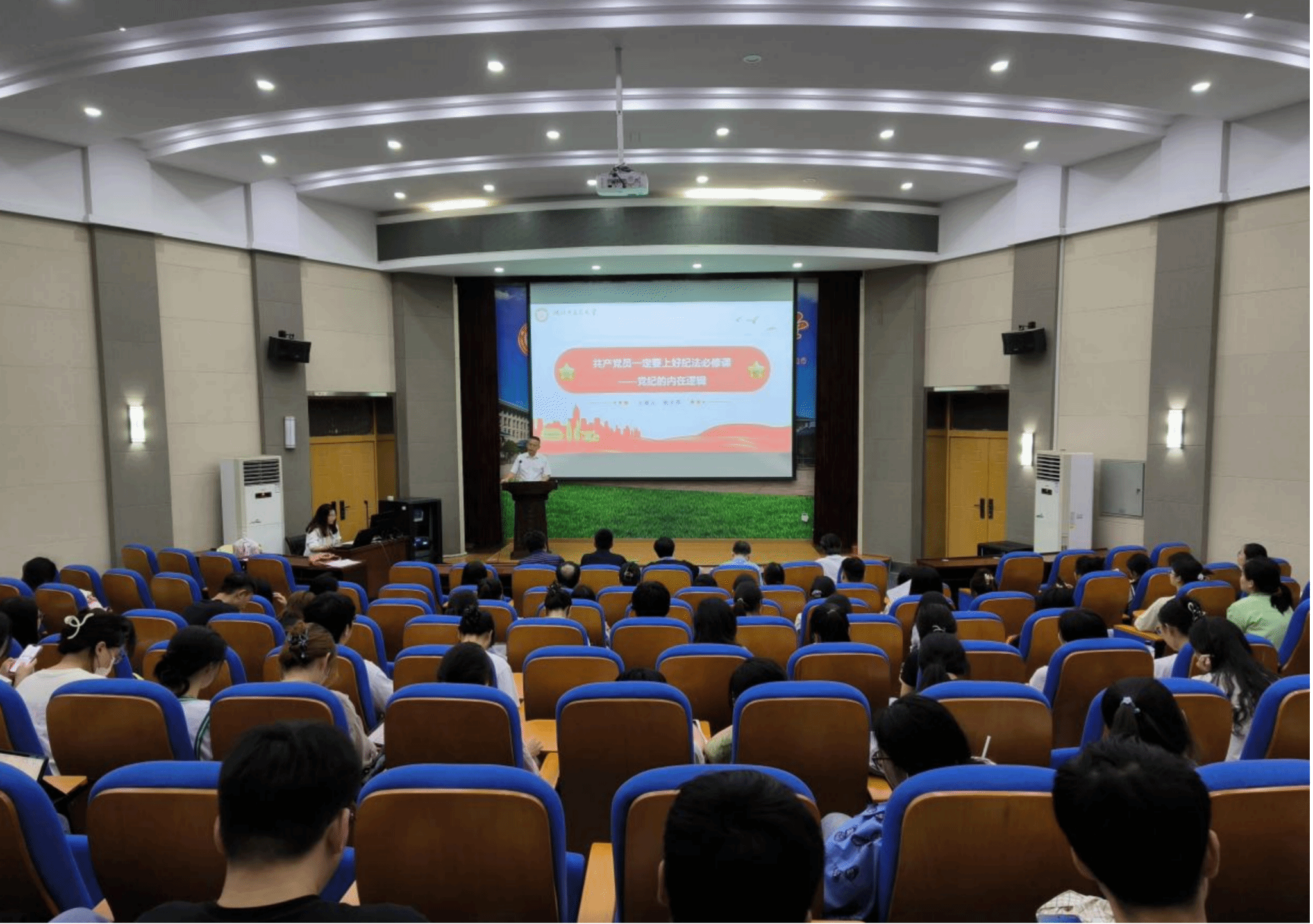 胡少萍结合深入贯彻中央八项规定精神学习教育要求,围绕“铁的纪律是党成为‘一块坚硬的钢铁’和战无不胜的法宝”“深刻把握新时代党的纪律建设的辩证法”“坚持党规制定、党纪教育、执纪监督全过程从严发力”“坚持自律和他律相结合”“坚持纪严于法、纪在法前,深化运用监督执纪‘四种形态’”等五个方面进行阐述,对反面典型案例进行深入剖析,阐明了党员遵守党规党纪的重要意义。