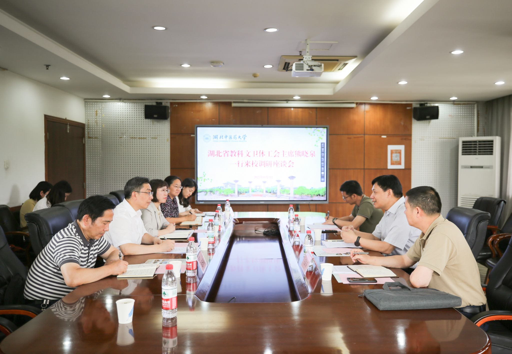 本网讯 6月3日,湖北省教科文卫体工会主席熊晓泉一行来校开展专题调研。副校长刘建忠主持调研座谈会,校工会、党委教师工作部、教务处等单位负责人参加座谈。