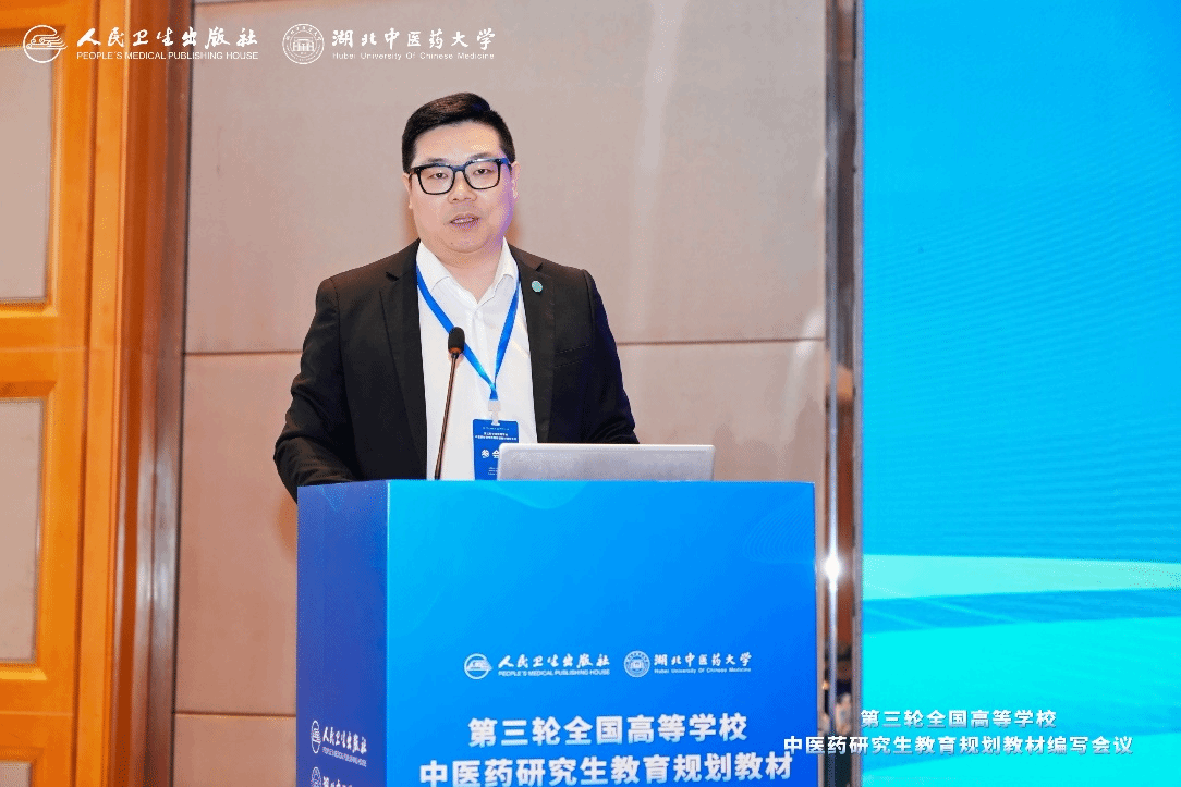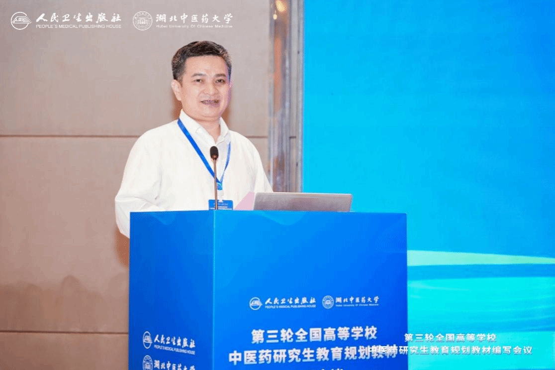 刘松林在致辞中首先代表学校向人民卫生出版社、省教育厅、省卫健委、省中医药管理局对我校教材编写工作的信任和支持表示诚挚感谢,对参加会议的专家学者表示热烈欢迎,并介绍了学校基本情况以及研究生教育成果。刘松林指出,教材是培养高层次人才的重要载体。人民卫生出版社对中医药院校研究生培养工作作出了重要贡献。学校将全力做好教材编写服务保障工作,并深化与兄弟院校及人民卫生出版社的交流合作,共同推动中医药研究生教育事业高质量发展。