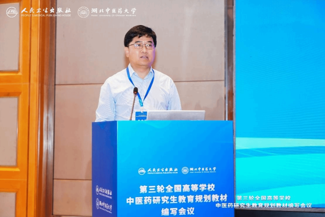本网讯 6月11日,由人民卫生出版社主办、湖北中医药大学承办的第三轮全国高等学校中医药研究生教育规划教材编写会议在武汉举行。人民卫生出版社中医药中心主任、西南分社董事长张科,湖北省卫健委中医药综合处处长李涛,湖北省教育厅学位管理与研究生教育处副处长陈进军出席开幕式并讲话。学校党委书记刘松林致辞。副校长曹继刚主持培训环节。副校长王彦春主持开幕式。8门规划教材编写团队220余人参加会议。