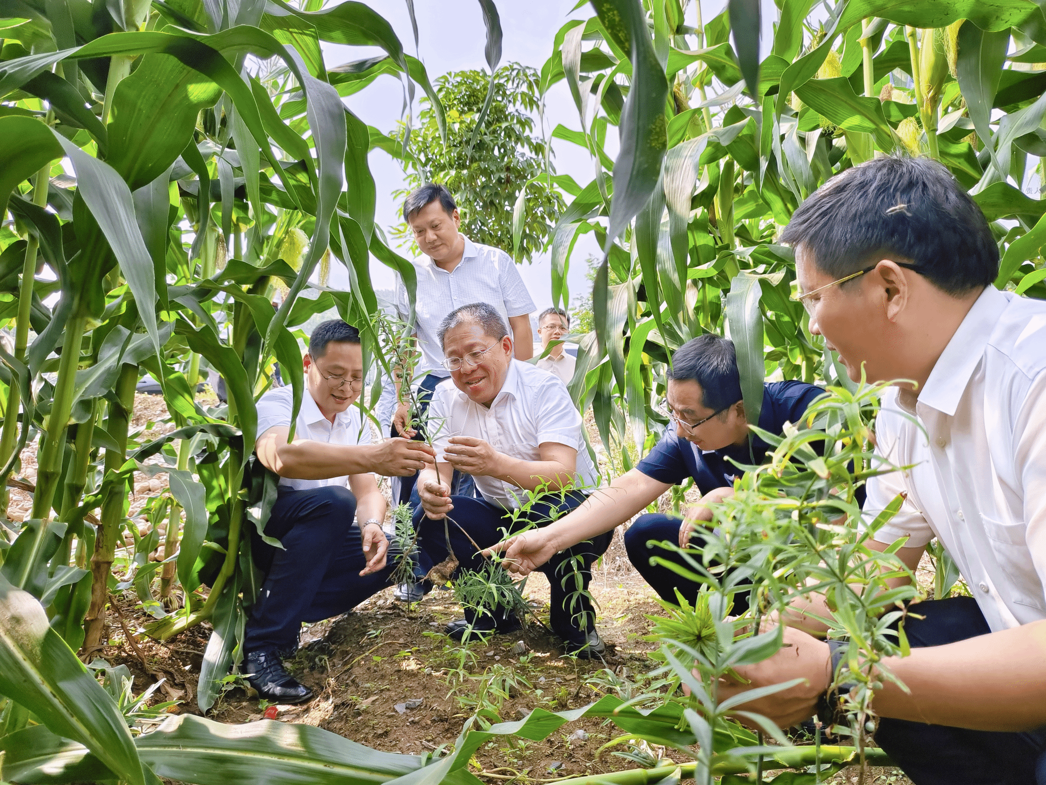 校长陈刚查看高标准黄精种植基地药材生长情况