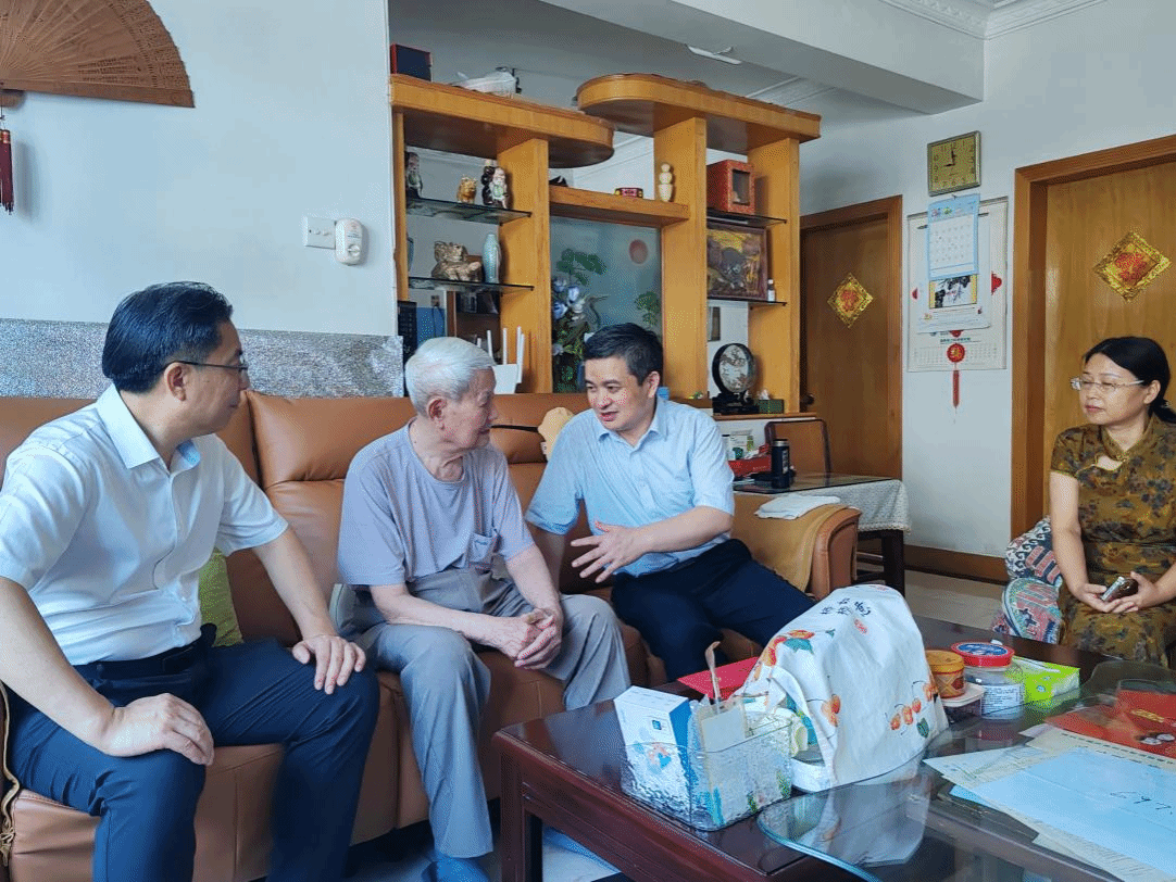 本网讯 在中国人民抗日战争暨世界反法西斯战争胜利80周年之际,8月29日,党委书记刘松林带队走访慰问抗日战争时期参加革命工作的离休干部董定祯、李永亭,送去学校党委的关怀与温暖,并致以崇高的敬意和诚挚的问候。副校长刘建忠,党委副书记、副校长蔡晓英,党委组织部、离退休工作处负责人参加慰问。