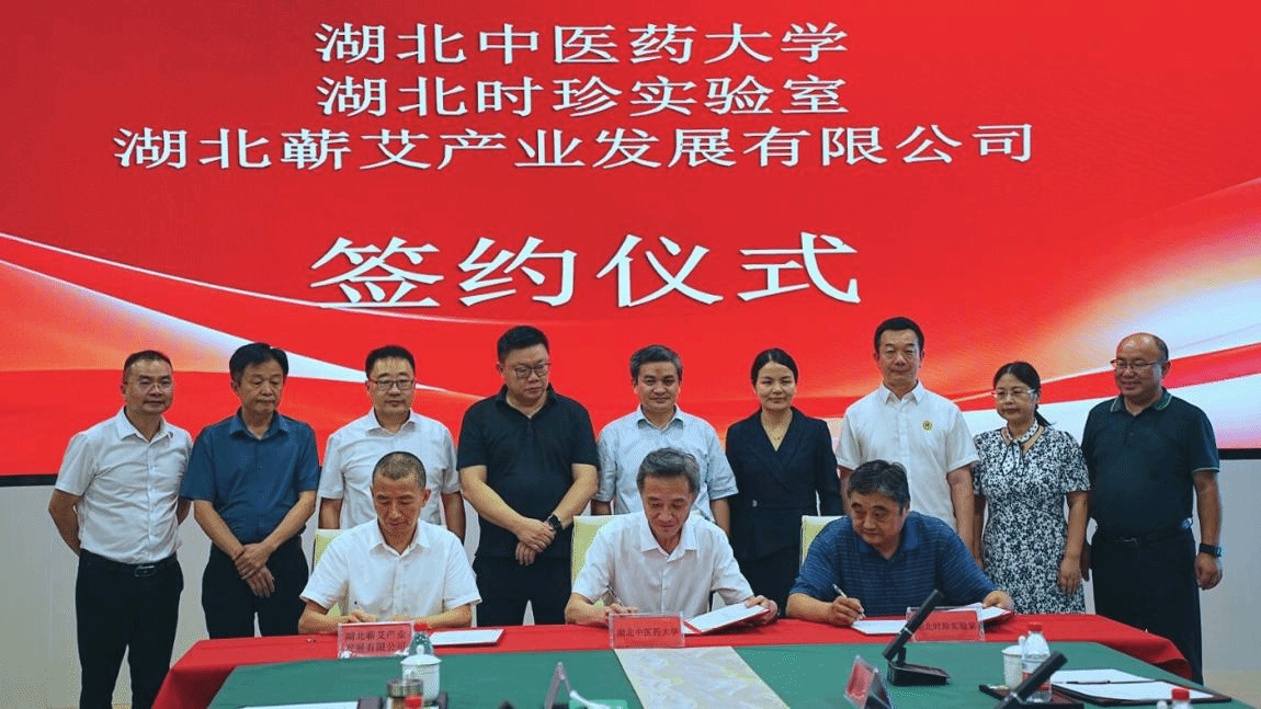 在签约环节,学校、湖北时珍实验室与湖北蕲艾产业发展有限公司代表共同签署合作协议,标志着楚药产业发展创新联合体正式成立。