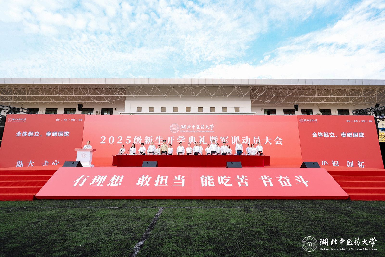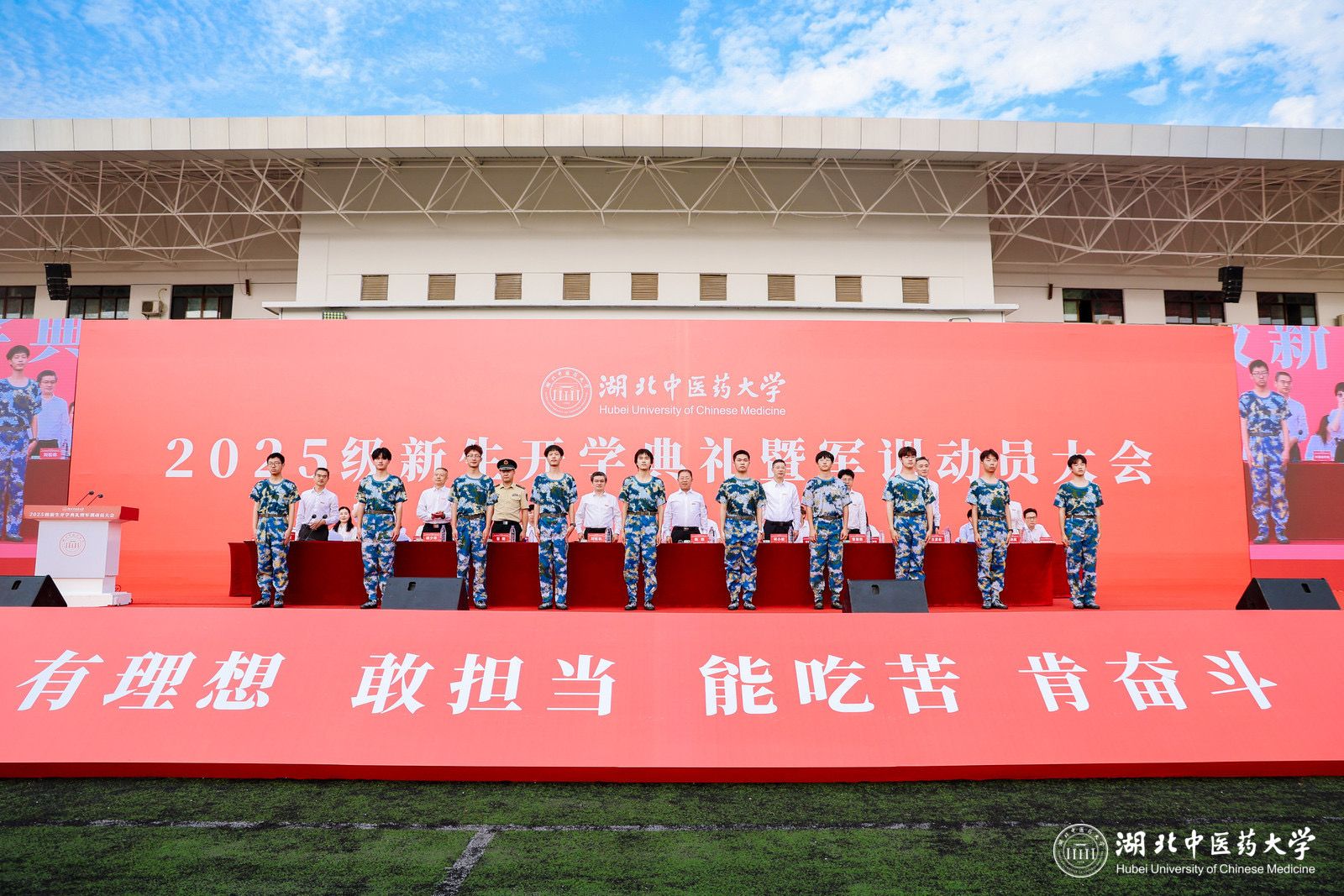 党委书记刘松林,校长陈刚,中国人民解放军火箭军指挥学院教练勤务营少校营长曾刚,党委副书记,附属医院党委书记、院长何小明,党委副书记杨波,纪委书记、监察专员胡少萍,副校长曹继刚,副校长王彦春,党委副书记、副校长蔡晓英,湖北省医学领军人才、湖北中医名师王小琴教授,中国人民解放军火箭军指挥学院全体承训教官,学校各职能部门、直属单位、各学院负责人,各学院分管学生工作负责人,新生班辅导员、2025级全体新生参加开学典礼。杨波主持大会。