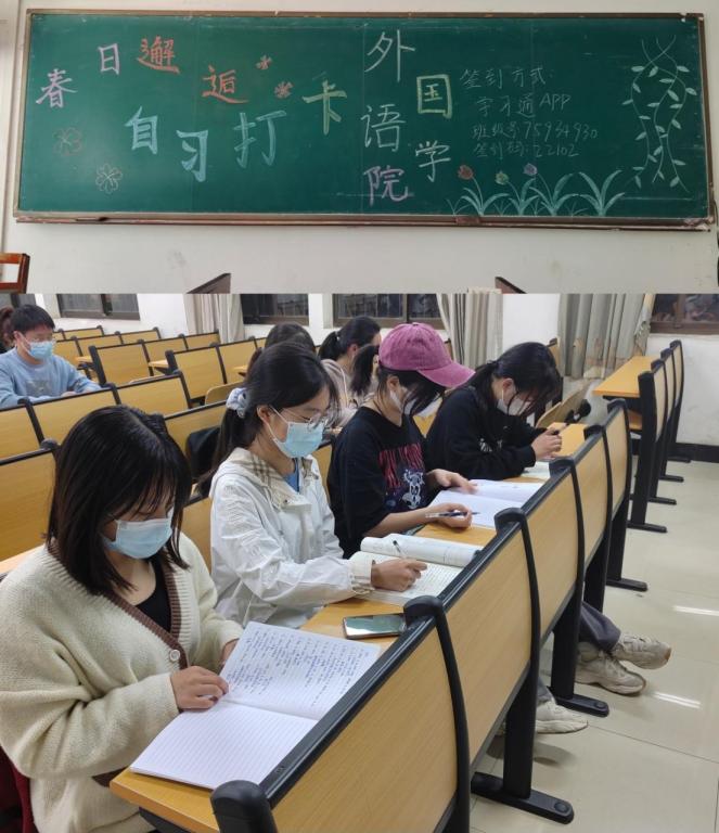 本次活动分为早间晨跑和晚间自习两个部分,采用线上打卡登记方式。活动当天,同学们在南区操场集合,迎着朝阳和春风列队晨跑,成为一道亮丽的风景线。傍晚7点,同学们前往人文楼R211开展自习活动。自习室里,大家或伏案疾书,或静心阅读,一同沉浸在知识的海洋中。