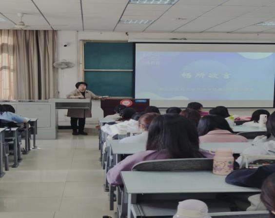 本网讯 近日,外国语学院特邀中科院心理所心理健康运营服务中心项目主任、多维教育集团人力资源部运营总监宋杨来校作专题讲座。外国语学院相关负责人、毕业班学生聆听讲座。就业秘书主持讲座。