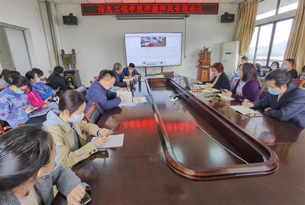 本网讯 4月14日,信息工程学院在信息楼502会议室召开师德师风专题会议。学院领导班子、全体教职工参加会议。