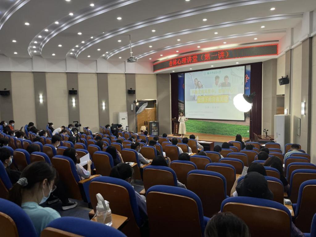 本网讯 为全面落实全国教育大会工作要求以及《教育部办公厅加强学生心理健康管理工作的通知》文件精神,帮助学生增强疫情下应对不良情绪的能力,保障大学生心理健康、阳光,5月12日,由学生工作部主办、管理学院承办的首场“杏林心理讲堂”在S101报告厅开讲。讲座采取线上线下相结合的方式进行,全校学生通过网络直播平台观看讲座,线上总观看量达1.14万人次。