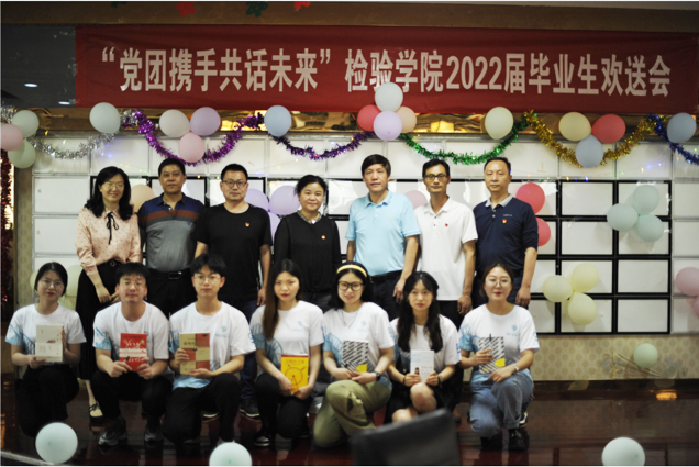 本网讯 为欢送2022级毕业生,5月26日,检验学院举办“党团携手共话未来”2022届毕业生欢送会暨食品质量与安全专业创新实践教学成果展活动。学生工作部相关负责人、校团委相关负责人、检验院领导班子及2022级全体毕业生参加活动。