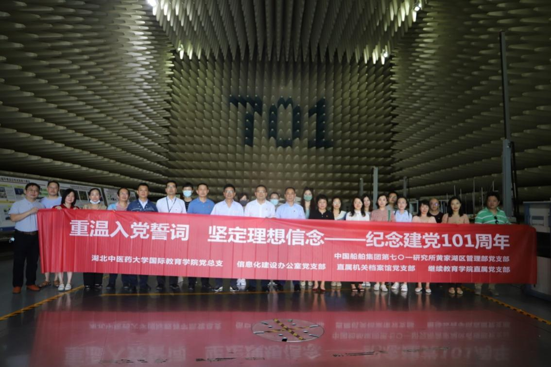 本网讯 为迎接党的二十大胜利召开,进一步创新基层党组织党建活动载体和形式,6月16日,继续教育学院直属党支部、国际教育学院党总支、信息化建设办公室党支部、直属机关档案馆党支部一行23人赴中国船舶集团第七〇一研究所黄家湖所区开展党建共建活动。黄家湖区管理部直属党支部书记、主任陈志斌,专务黄向明、吕永邦等10余位党员参加活动。