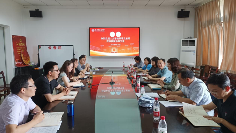 会上,外国语学院负责人对人文学院领导、老师的到来表示热烈欢迎,介绍了学院学科建设特点、MTI翻译专业硕士学位点建设和成果、各类教学和学科竞赛等方面的情况。双方就人文学院汉语国际教育专业人才培养方案、中医文化学学科建设、拟新建硕士学位点等方面的情况进行了深入地交流研讨,具体讨论了两院在教育教学、科研交流、学科建设、竞赛互助等方面的合作事宜。双方一致表示,希望进一步加强沟通交流,推动两院共同稳步发展。