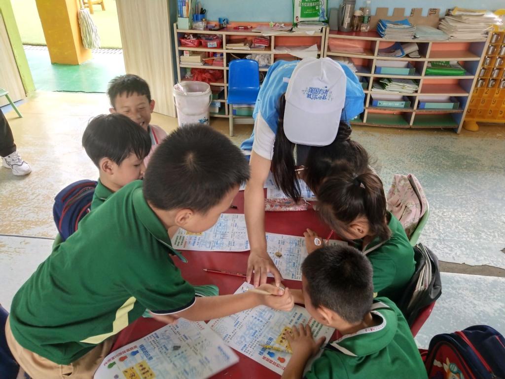 志愿者向幼儿园小朋友宣讲科技与环保知识