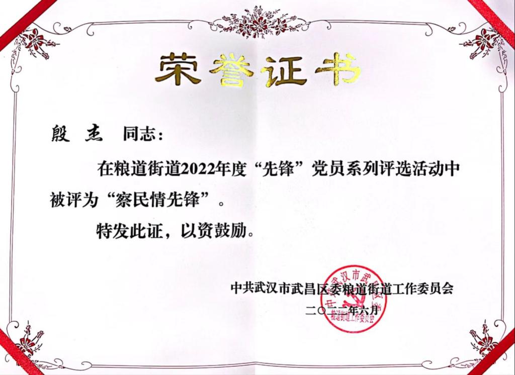 国医堂殷杰老师获“察民情先锋”荣誉称号