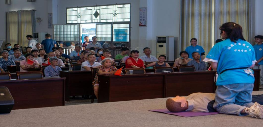 专家们介绍了“未病先治”的中医养生理念,并耐心细致地为村民们把脉问诊、测量血压、分析病情,给出相应的中医养生、中医调理、中医护理的措施。周慧敏为居民讲解了常见慢性病的中医护理方法和相关食疗知识,并进行一对一指导。学院湖北省首届新时代文明实践志愿服务银奖项目团队成员开展了急救知识,儿童眼部、口腔和心理护理以及生理健康等方面的健康宣讲。