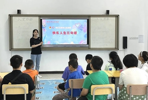 此次“七彩假期”课程主要围绕文化传承、思想引领、身心健康、健康生活、艺术素养、科技创新、快乐学习七个方面开展。志愿者结合专业特色,宣传食品安全知识,并融入爱国主义教育,带领孩子们认识国旗、党旗、军旗、团旗,同时针对乡村留守儿童心理健康教育,制定身心健康课程,激励孩子们热爱生活,热爱社会,引导孩子们孝敬父母,体验亲情。