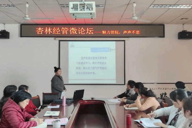 本网讯 为帮助老师们科学发声、保护声带,3月2日,管理学院举办杏林经管微论坛之“魅力管院,声声不息”教师发声护嗓知识讲座活动。此次活动由管理学院专职辅导员高蒙晰老师主讲,学院全体教师参加活动。