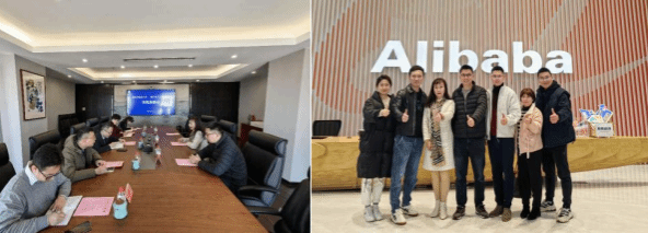 随后,学院相关负责人一行先后走访了阿里巴巴人才服务商杭州一丰品牌管理有限公司、阿里巴巴国际站区域合伙人杭州大富翁网络科技有限公司、永康市久久太阳电子商务有限公司三家合作单位,与各单位围绕学生实习、未来合作等进行深入探讨,推进就业实习基地项目落实落地。学院相关负责人为“久久太阳”授予湖北中医药大学“就业基地”和“创新创业基地”牌匾。