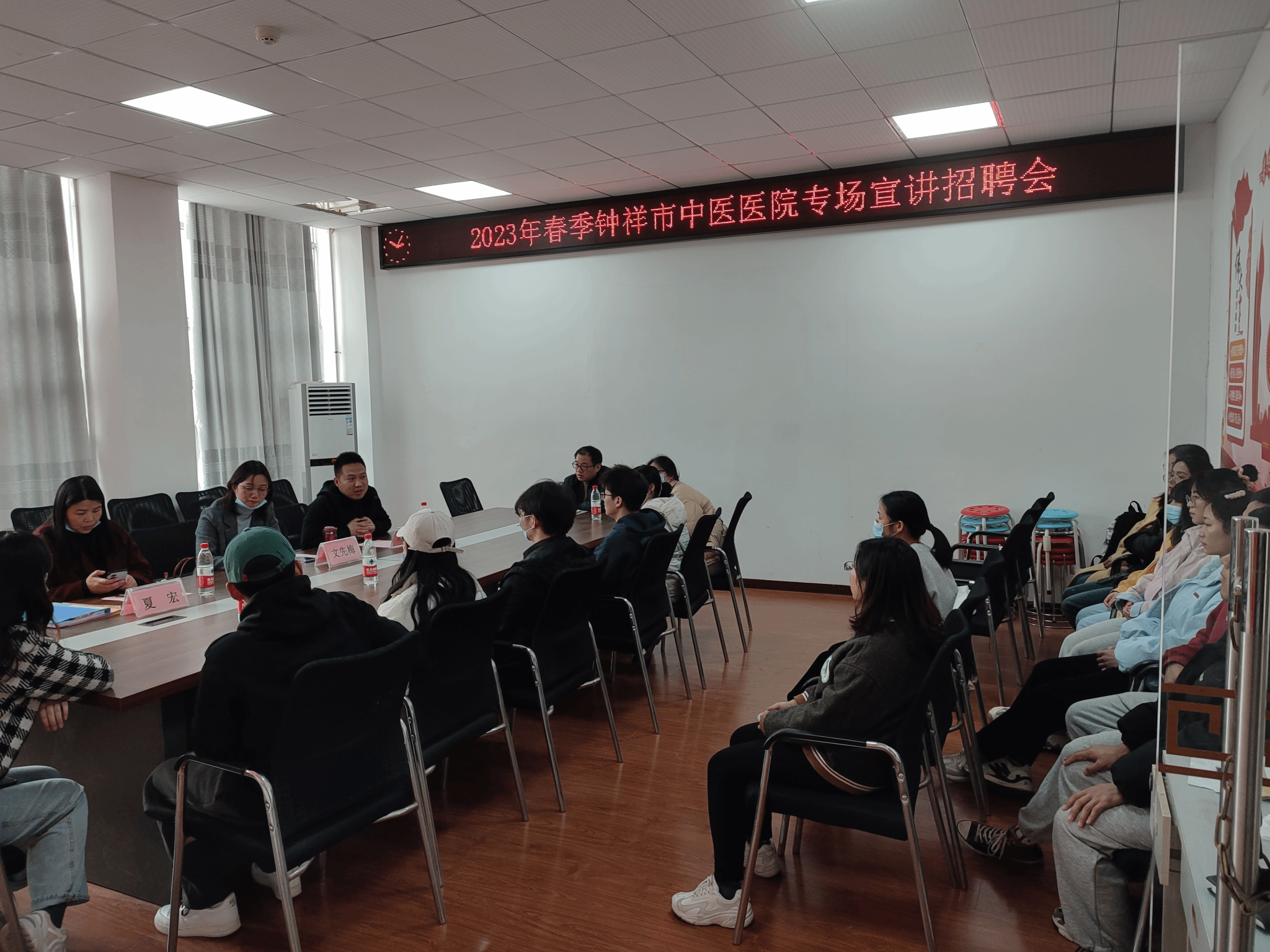 随后,钟祥市中医医院开展就业宣讲,向参会毕业生们介绍了医院人才政策、工资待遇等情况,在互动交流环节,文先梅针对毕业生们关注的人才政策、发展空间等问题进行耐心解答。