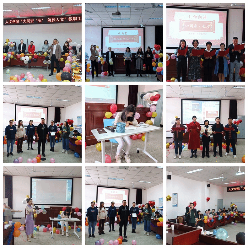本网讯 3月9日,人文学院分工会在学院模拟法庭会议室举办“大展宏‘兔’筑梦人文”教职工联欢会。校纪委书记、监察专员胡少萍,学院全体教职工参加活动。