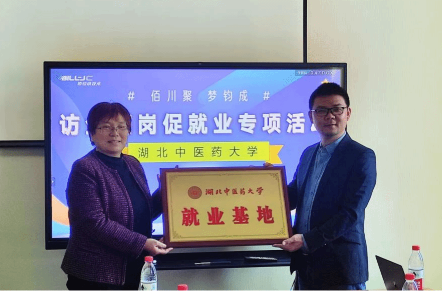 学院负责人为企业授予“湖北中医药大学就业基地”牌匾,并向企业工作人员颁发“大学生职业导师”聘书。
