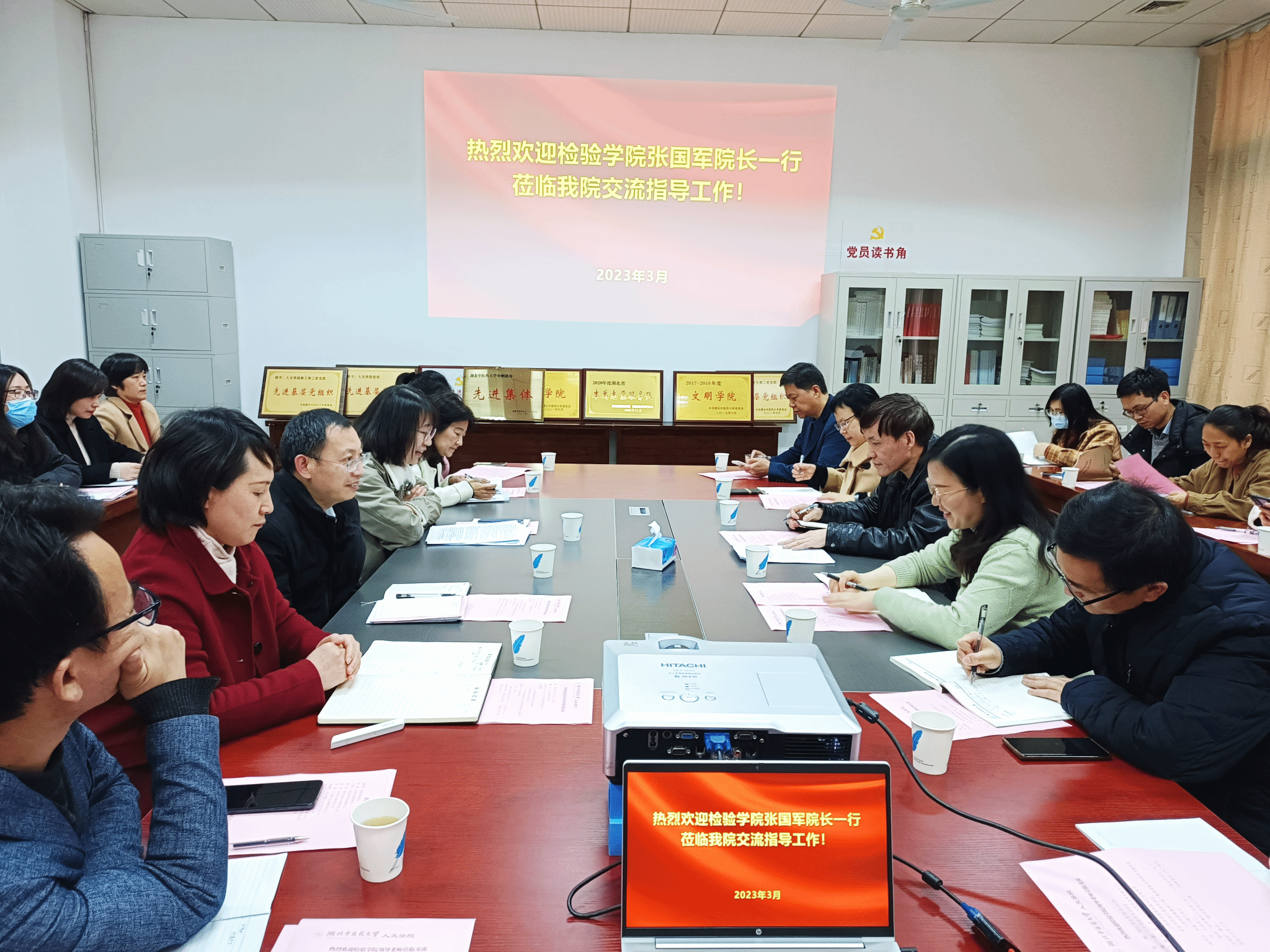 人文学院党委负责人首先对检验学院一行的到来表示热烈欢迎,从历史沿革、教学科研、学科建设、师资队伍等方面简要介绍了学院基本情况,希望双方进一步围绕人才培养、学科建设、科学研究等加强交流合作,推动工作提质增效。检验学院负责人说,检验学院和人文学院有着相近的办学经验,在教育教学、科学研究、师资队伍建设、人才培养等方面有较多相互学习借鉴的经验,希望双方将工作中形成的好做法、好经验、好作风互相传经送宝,共同推动学院高质量发展。
