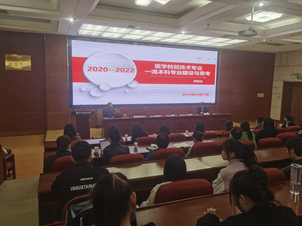 本网讯 为推进学院专业建设,进一步提升人才培养质量,3月27日,检验学院邀请厦门大学实验医学系主任郑铁生教授来校,在黄家湖校区图书馆报告厅作一流本科专业建设讲座,检验学院全体教职工聆听讲座,学院行政负责人主持讲座。