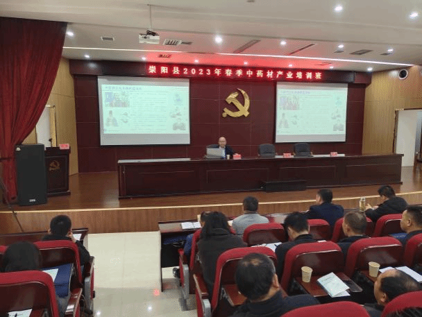 本网讯 3月30日,由崇阳县农业农村局主办的崇阳县春季中药材产业培训班在县委党校开班。湖北省中药材产业技术体系研发首席、“科创中国”中药生态农业产业服务团专家、国家中药材产业技术体系黄冈综合试验站站长、我校药学院刘大会教授应邀参加培训班开班仪式并进行授课和实地培训。崇阳县委常委陈熙出席开班仪式,全县各乡镇中药材产业分管负责人、村支部书记、各乡镇中药材市场主体、县乡村振兴办产业工作组人员共200余人参加培训。