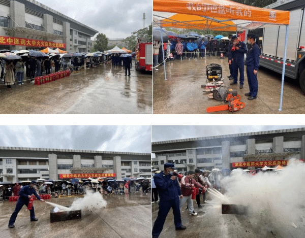 本网讯 为加强校园安全管理,提升师生消防安全意识与自护自救能力,4月23日,保卫处在黄家湖校区体育馆前组织消防演练,洪山区应急救援消防大队相关负责人及青菱应急救援消防中队官兵,学校各单位相关负责人,学生代表和后勤第三方服务管理人员参加演练。