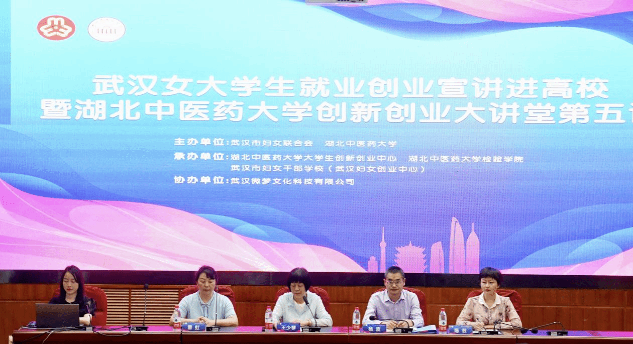 本网讯 4月21日,武汉女大学生就业创业宣讲进高校暨湖北中医药大学创新创业大讲堂第五讲举办。武汉市妇女联合会一级调研员王少琴、发展部部长陈芸,武汉市妇女干部学校校长曹虹、妇联女企业家代表,副校长杨波,校团委、检验学院相关负责人出席活动。学院师生代表150余人参加活动。