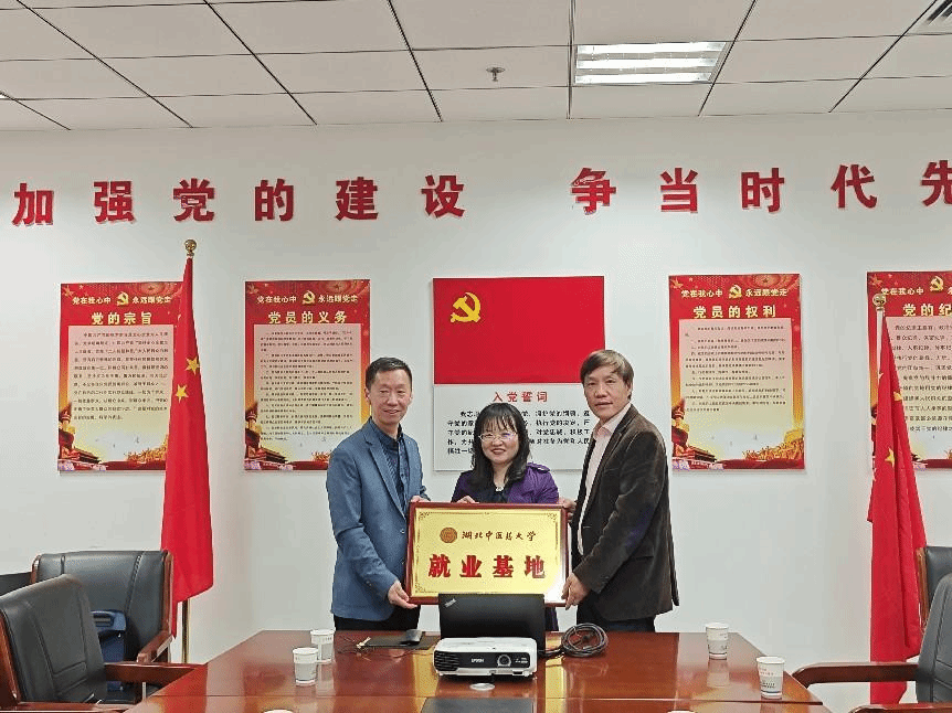 检验学院党委、行政负责人共同为研究所颁发湖北中医药大学就业基地牌匾