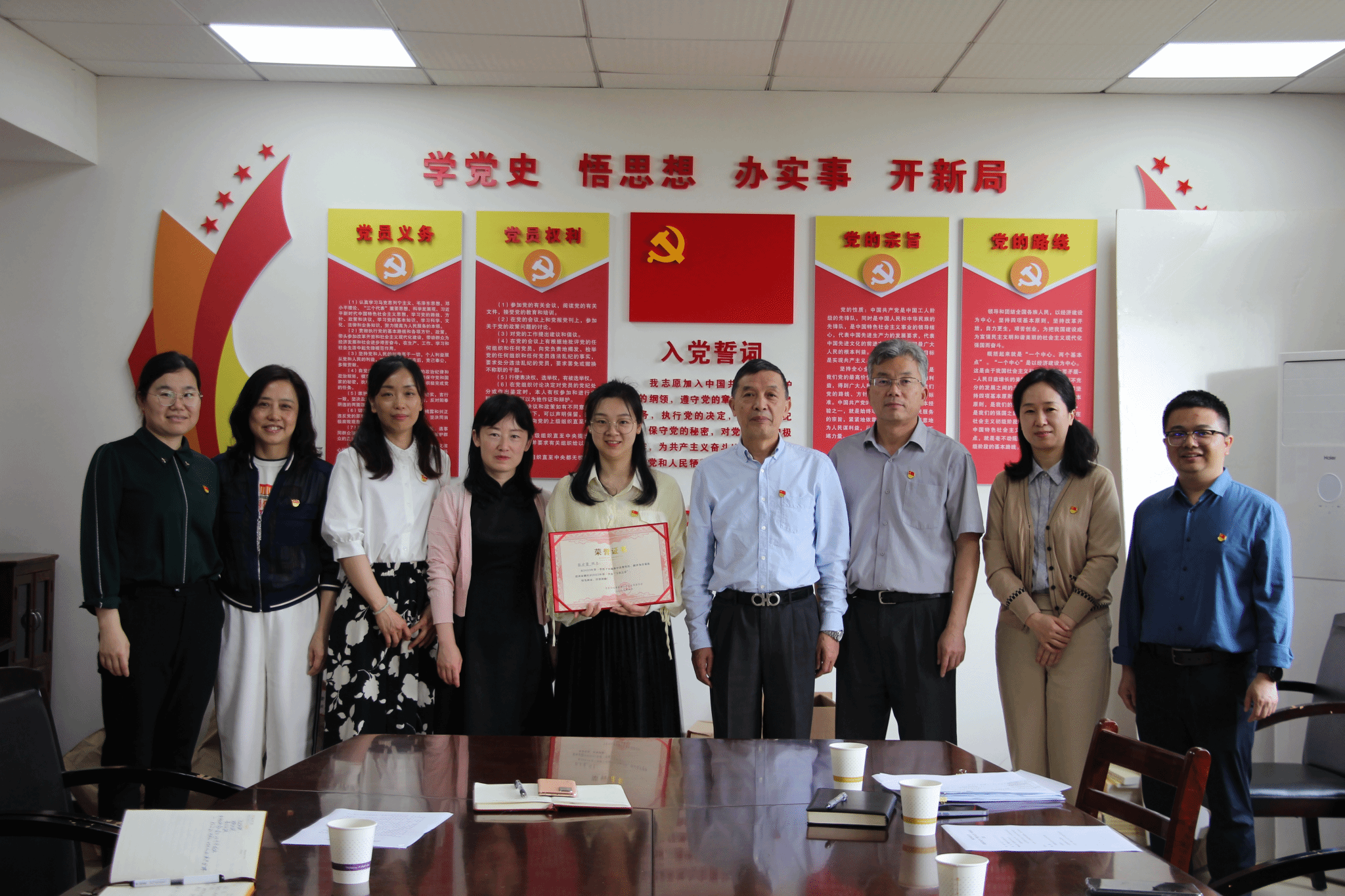 本网讯 5月12日,青菱街道黄家湖社区党总支书记、主任马丽君一行来校,为我校下沉黄家湖社区党员张方蕾同志颁发了青菱街道黄家湖社区2023年“季度下沉之星”荣誉证书。校党委副书记李水清,直属机关党委委员、组织统战支部党员代表参加颁奖仪式。仪式由党委组织部负责人主持。