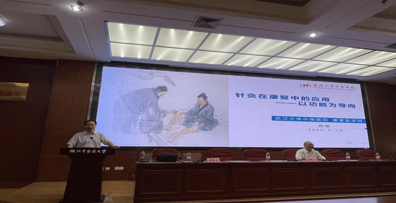 本网讯 5月16日,武汉大学中南医院田峻教授做客杏林针艾讲堂,在黄家湖校区图书馆学术报告厅为师生作题为“针灸在康复中的应用——以功能为导向”的学术报告。针灸骨伤学院行政负责人主持报告会,200余名师生聆听报告。