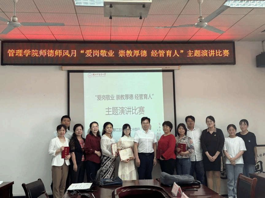 本网讯 为进一步加强师德师风建设,增强教师工作责任感和使命感,5月25日,管理学院举办“爱岗敬业 崇教厚德 经管育人”主题演讲比赛,6位教师代表参加比赛,学院负责人、各教研室主任、学生代表担任比赛评委。比赛由学院教学工作负责人主持。
