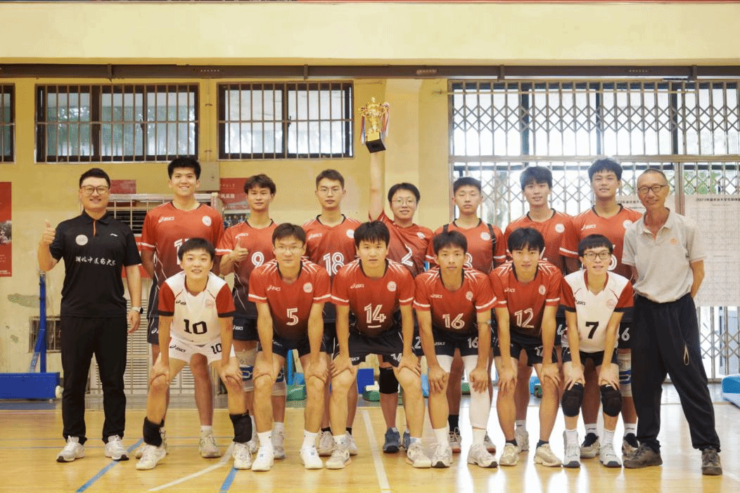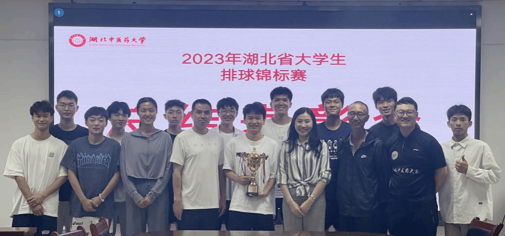 学校根据本年度第25届“时珍杯”排球比赛竞赛情况,在各学院中遴选14名优秀队员参加本届省大学生排球锦标赛男子甲组比赛。小组赛中,我校队员战胜上届季军华中农业大学,以四胜一负、小组第二的优异战绩进入八强;淘汰赛阶段赛中,队员们咬紧牙关、奋力拼搏,先后战胜中南财经政法大学和武汉工程大学,获得大赛男子甲组第五名。