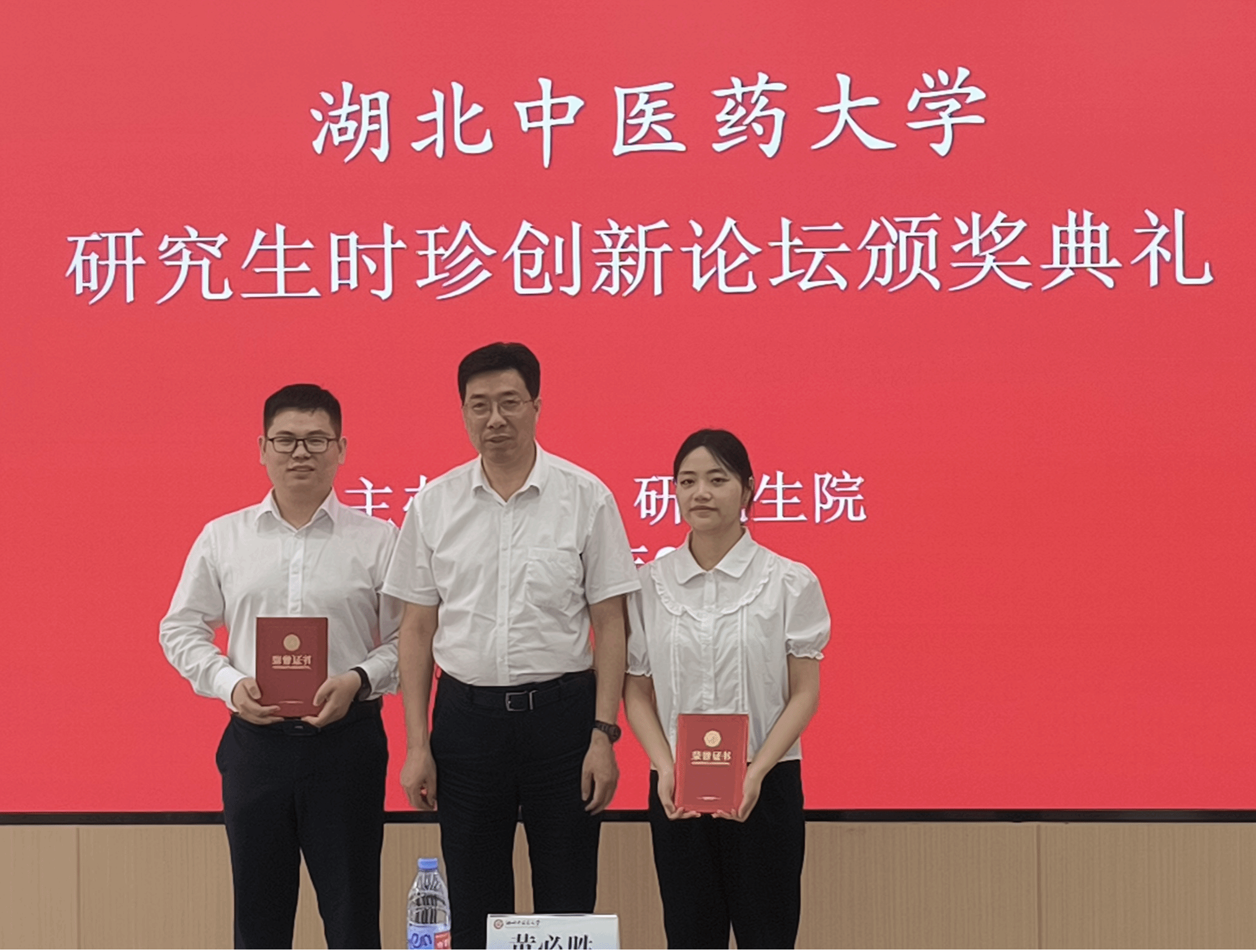 本次论坛共评审出一等奖2名,二等奖3名,三等奖7名,优秀奖11名。黄必胜与评审专家、研究生院负责人分别为获奖研究生颁发荣誉证书和奖品,对获奖研究生致以真挚祝贺,鼓励大家潜心科学研究,勇于探索创新,志存高远,努力成长为担当民族复兴大任的时代新人。