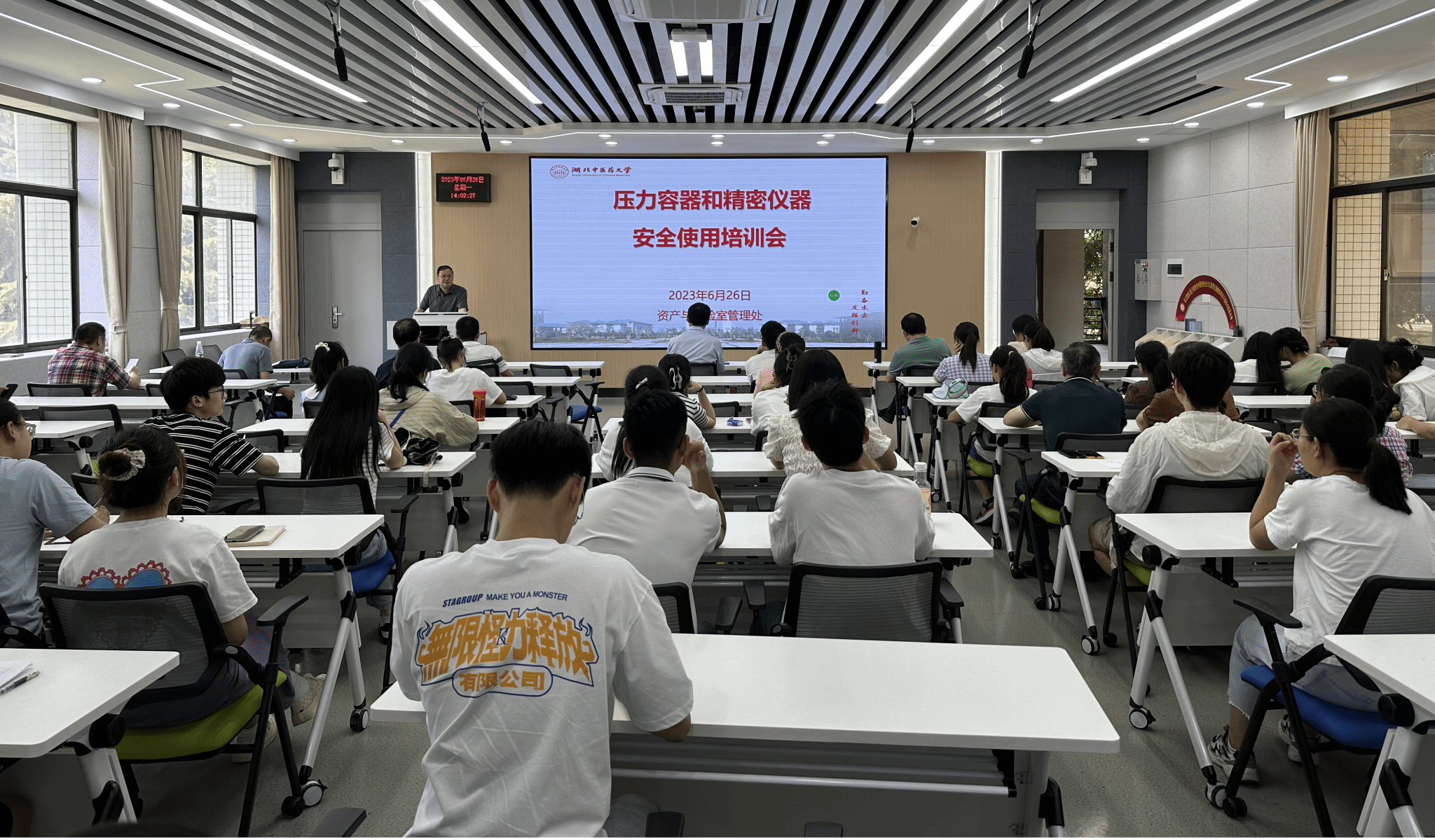 本网讯 6月26日,资产与实验室管理处在黄家湖校区本草苑Y102教室举办压力容器和精密仪器安全使用培训会。相关职能部门和学院负责人、压力容器和精密仪器使用人员、实验技术人员、研究生代表等参加培训。培训会由资产与实验室管理处负责人主持。