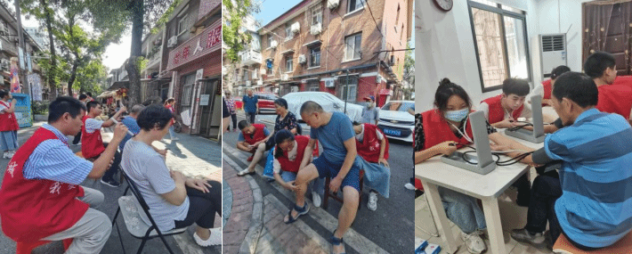 活动期间,志愿者们为老人测血压,利用艾条进行穴位熏香按摩,宣讲养生保健知识。