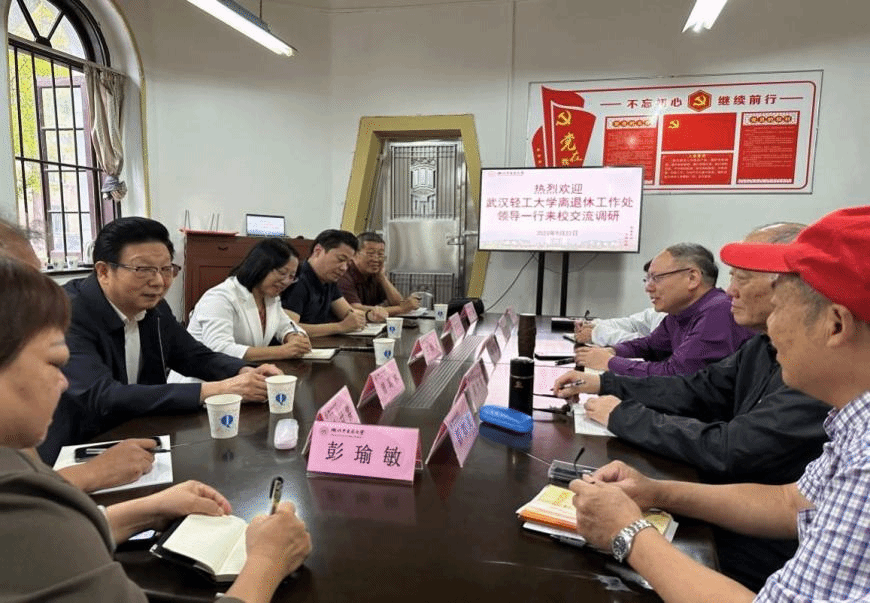 本网讯 近日,武汉轻工大学离退休工作处党委书记王尚玉、老年协会会长曾其林等一行6人就离退休工作和涉老组织运行管理等来校调研交流。离退休工作处负责人、关工委常务副主任吴楚燕、老年协会会长黄光焕及副会长彭如发等参加调研座谈会。