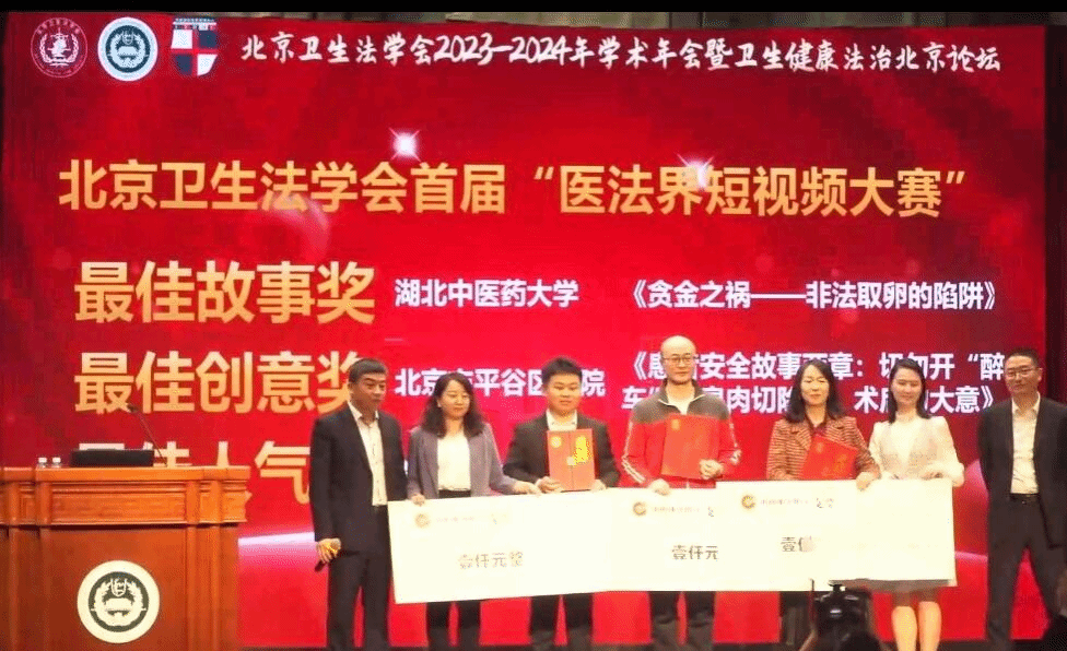 本网讯 1月20日,北京卫生法学会2023-2024年学术年会暨卫生健康法治北京论坛在北京召开。会议公布了首届“医法届短视频大赛”比赛结果,我校医学人文学院学生作品(指导老师:张宇清、张斌,参赛学生:刘宇航、黄柯、江星、邓青莲、郭海岑)获“最佳故事奖”。
